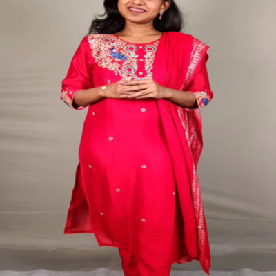 Red Muslin Suit Set with Abstract Print Dupatta Original price was: ₹1,500.00.Current price is: ₹1,199.00.