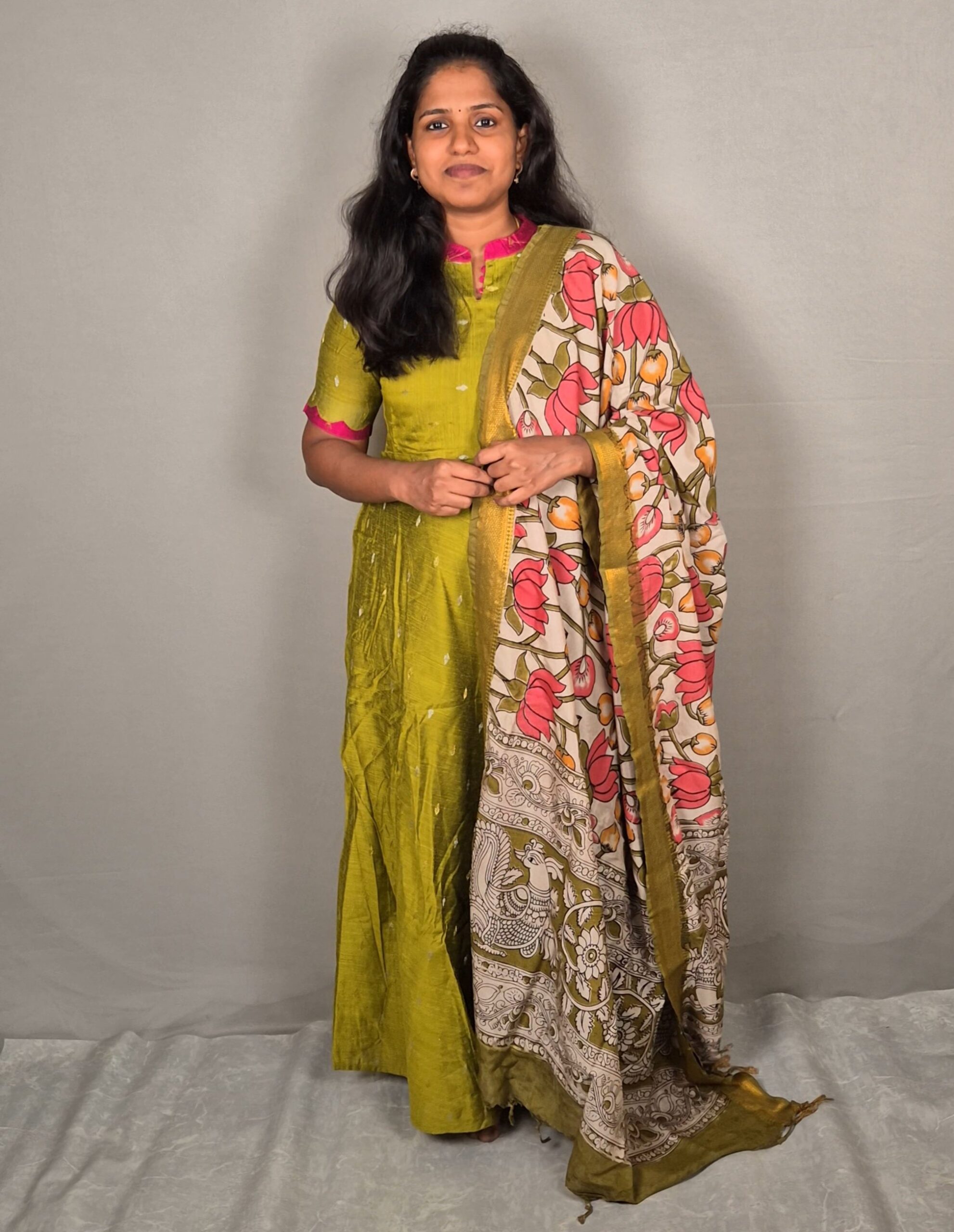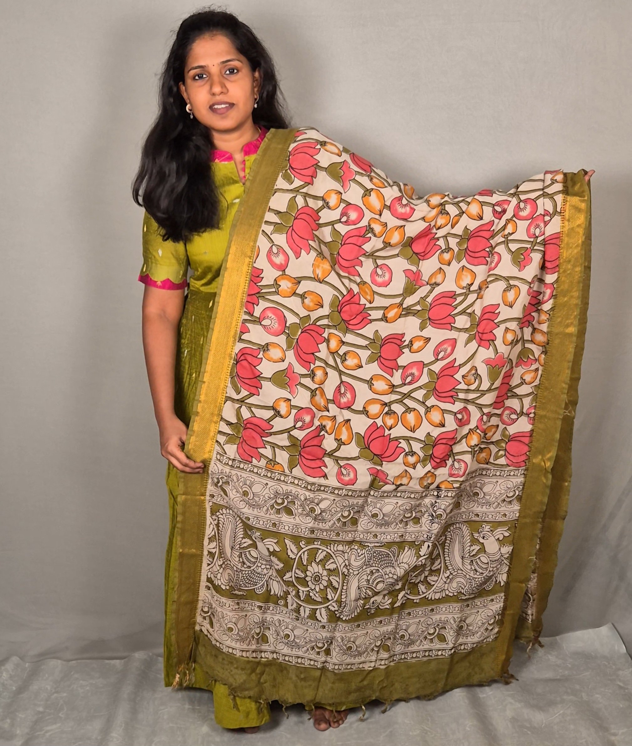 Fabric- Raw Silk (Maxi) l Kalamkari Silk Dupatta